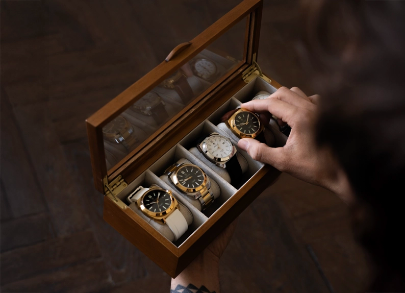 Every step of production follows rigorous standards. From precision Japanese watch movements to Spain’s master leather artisans, our partners bring generations of expertise to ensure durability, precision, and lasting quality.