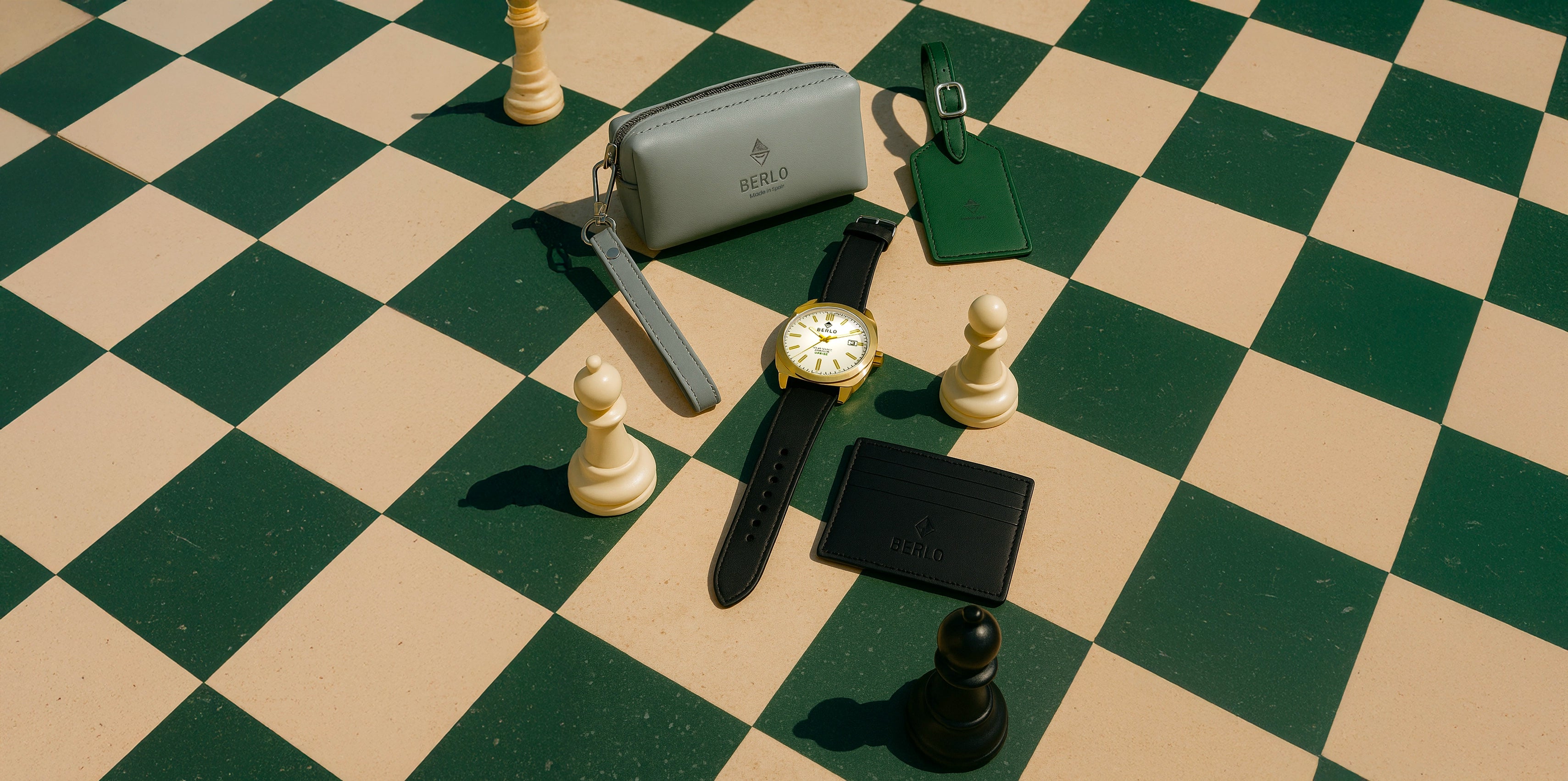 Every Berlo piece is made by expert artisans: watches powered by Japanese movements and assembled under rigorous standards, and cactus leather goods crafted in Ubrique, the heart of European luxury leatherwork.